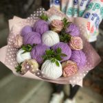 “Атлас☁️” – цветочная композиция с зефиром в деревянном ящике