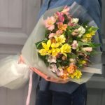 Альстромерия – 15 шт.Упаковка дизайнерская – 4 шт.Лента атласная – 2 шт.
