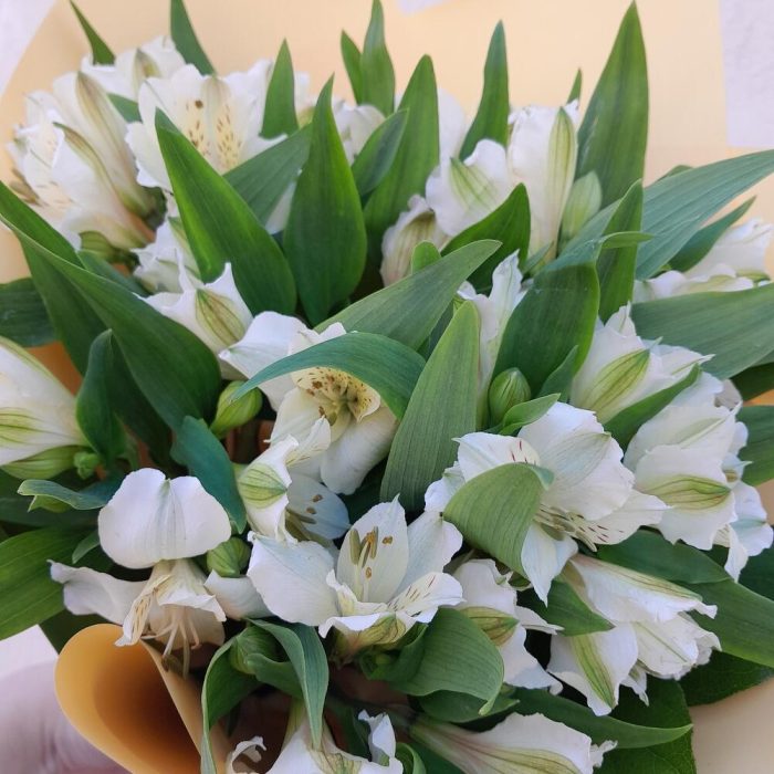 Альстромерия – 7 шт.Салал – 3 шт.Лента атласная – 2 шт.Упаковка дизайнерская – 3 шт.
