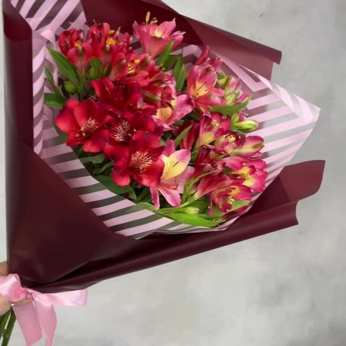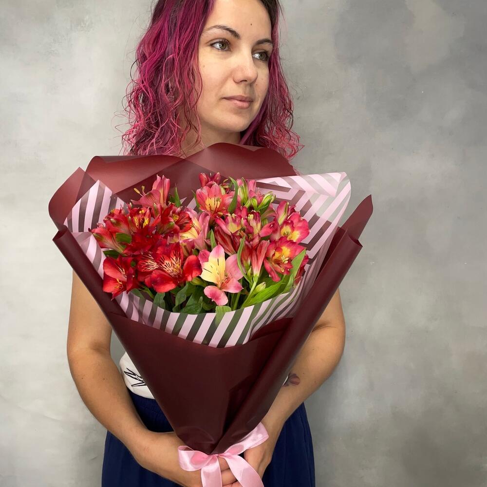 Альстромерия – 7 шт.Лента атласная – 1 шт.Упаковка дизайнерская – 1 шт.