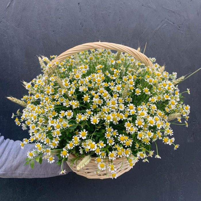 Матрикария – 25 шт.триникум колосья – 30 шт.Оазис флористический – 1 шт.Корзина плетеная – 1 шт.