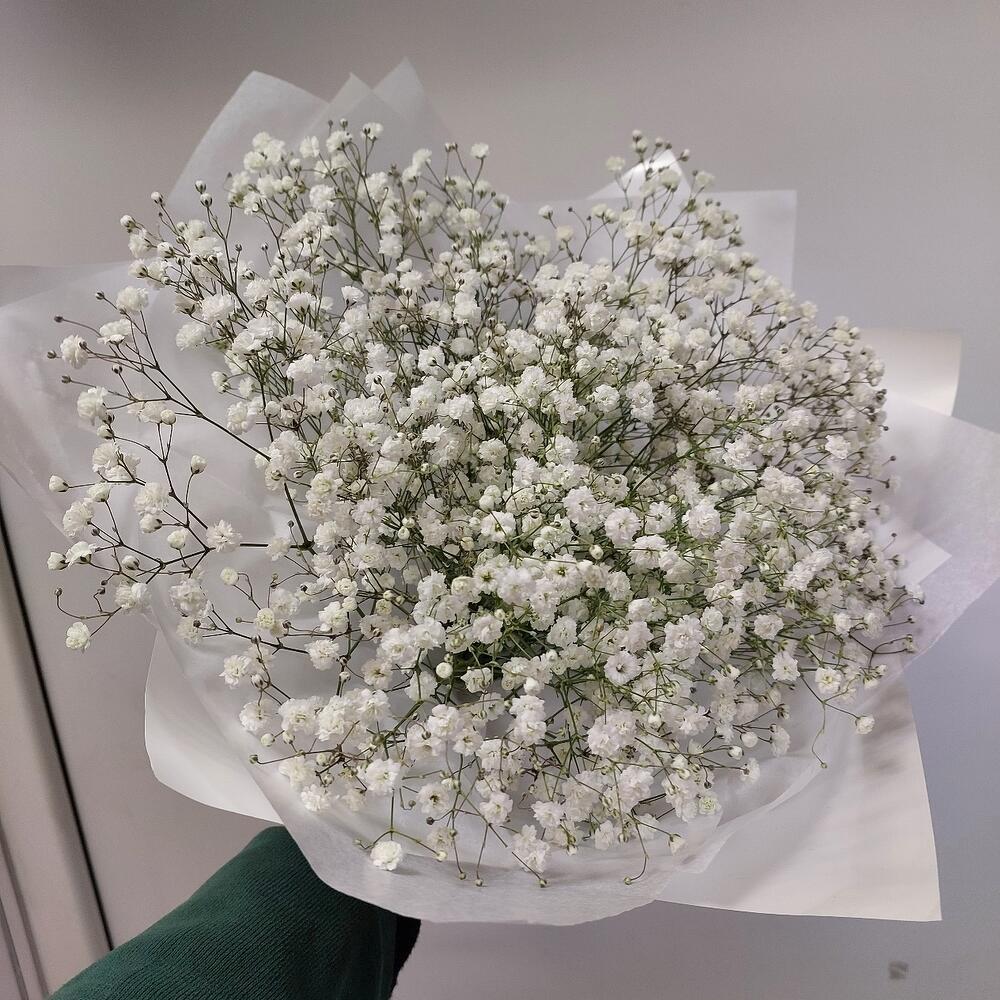 гипсофила белая – 5 шт.Упаковка тишью – 1 шт.Упаковка дизайнерская – 1 шт.