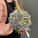 Цветочная композиция в стаканчике с гипсофилой и матрикарией. За счет пышности этих цветов, букет смотрится как воздушное облако. Отлично подойдет в качестве подарка или дополнения к подарку на любое торжество или просто как знак внимания.* По вашей просьбе, мы подпишем открытку с наилучшими пожеланиями. * Каждый букет цветов (композиция цветов в коробке) упаковывается в прозрачную плёнку и в крафтовый пакет.* Гипсофила одна из самых стойких цветов. При условии замены воды она может простоять в вазе до трех недель. Некоторые бутончики могут подсохнуть, но в общей массе цветы сохраняются. Если оставить гипсофилу без воды, она превратится в сухоцвет.