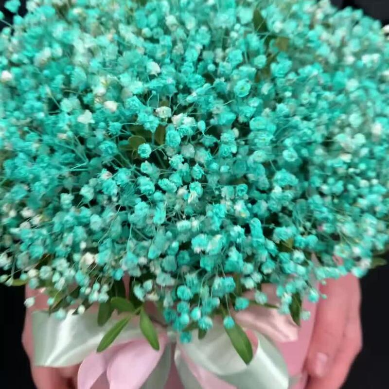 Гипсофила – 5 шт.Коробка шляпная – 1 шт.Лента атласная – 2 шт.Оазис флористический – 1 шт.Фисташка – 3 шт.