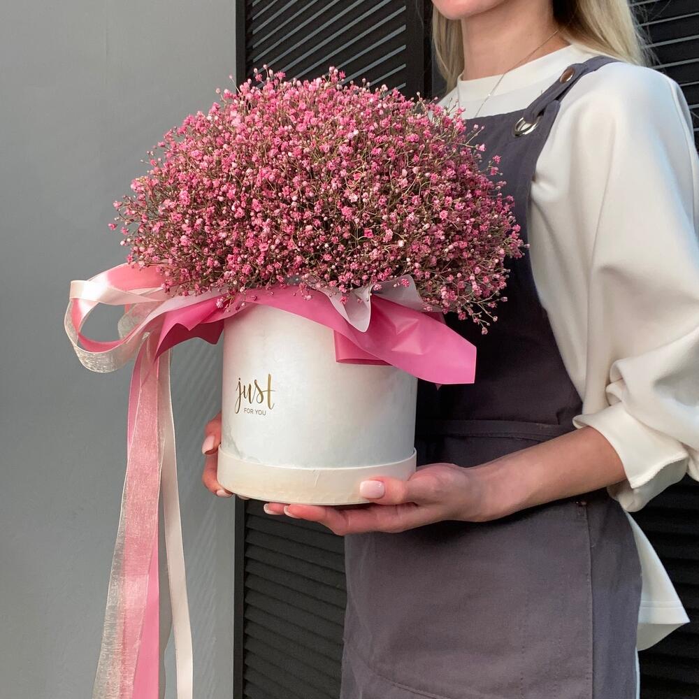 Гипсофила – 7 шт.Коробка шляпная – 1 шт.Оазис флористический – 1 шт.