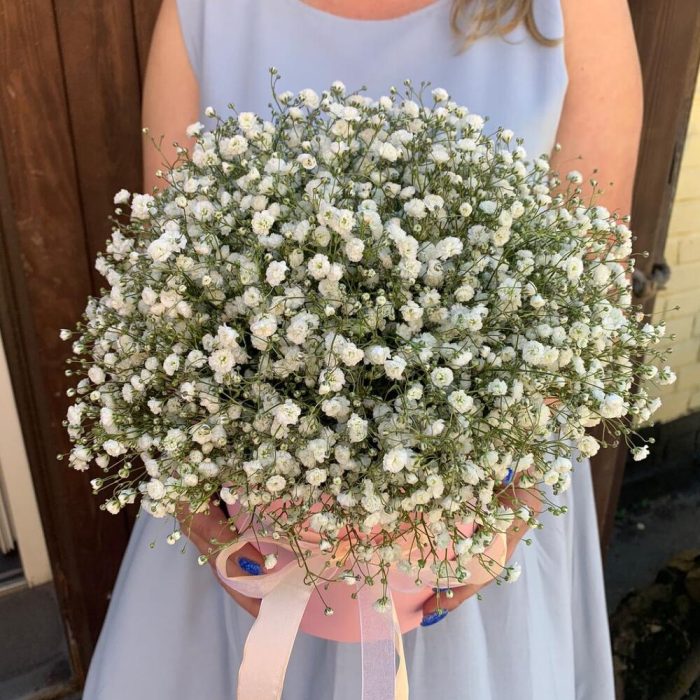 Нежная воздушная гипсофила в стильной шляпной коробке
