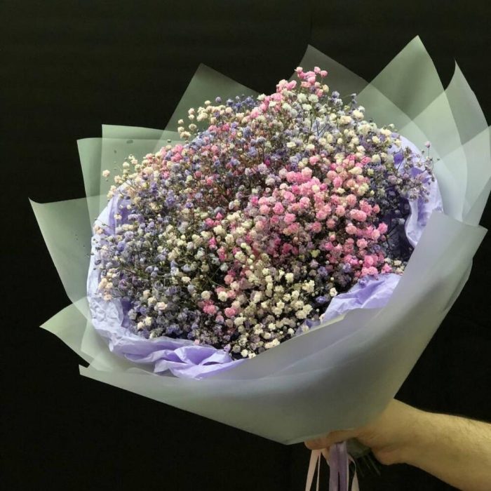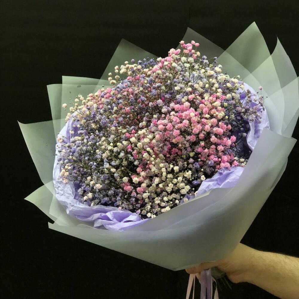 Гипсофила – 11 шт.Лента атласная – 3 шт.Упаковка дизайнерская – 1 шт.