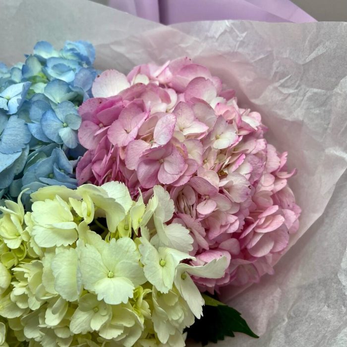 Гортензия – 3 шт.Лента атласная – 1 шт.Упаковка дизайнерская – 3 шт.