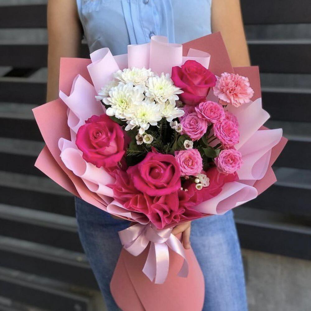 Гвоздики, Кустовые розы, Лизиантусы, Пионовидные розы, Розы