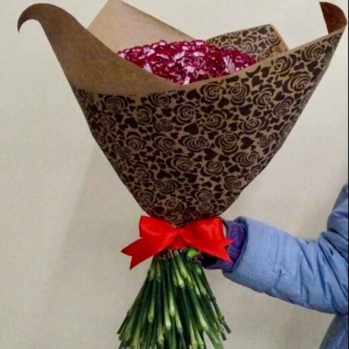Букет из 75 Гвоздик бордо в крафте