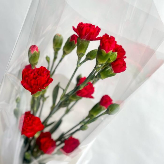 Гвоздика кустовая – 5 шт.Упаковка дизайнерская – 1 шт.Открытка – 1 шт.
