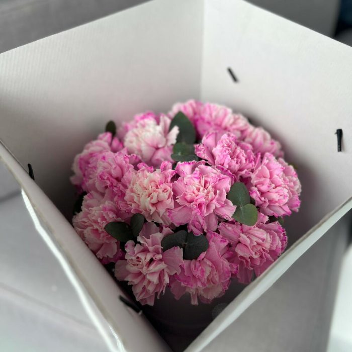 Шляпная коробка ярко-розовых гвоздик (N 145)