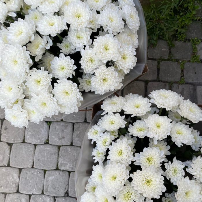 Белые кустовые хризантемы 3 штуки