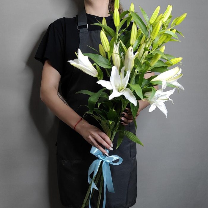 Лилия белая – 3 шт.Лента атласная – 1 шт.