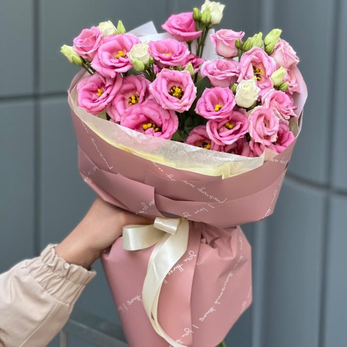 Букет из розовой эустомы в оформлении!
