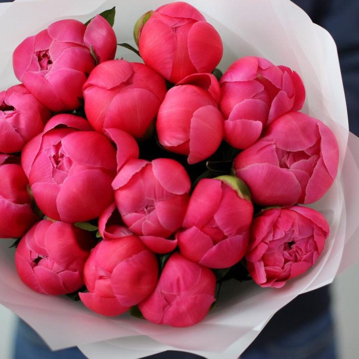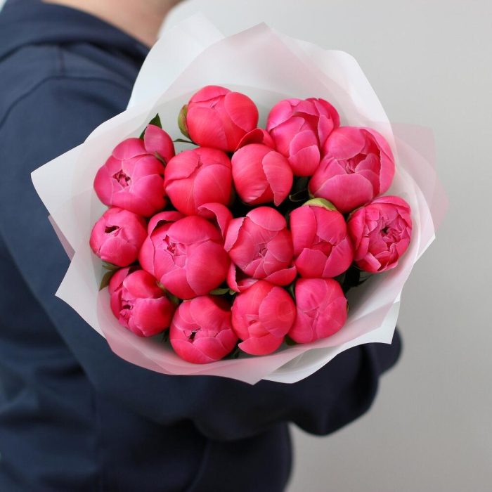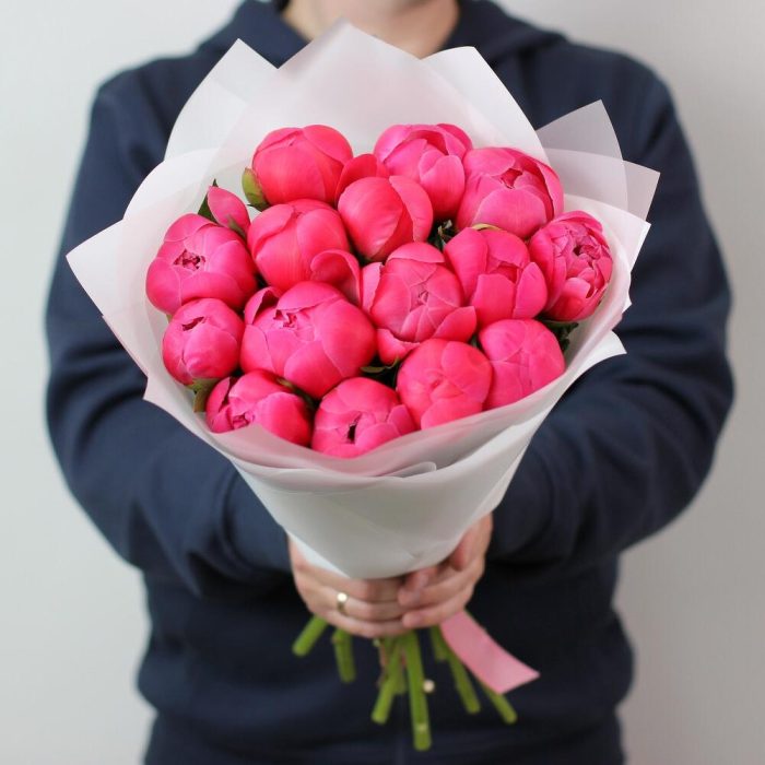 15 коралловых пионов. Букет 15 KimFlo