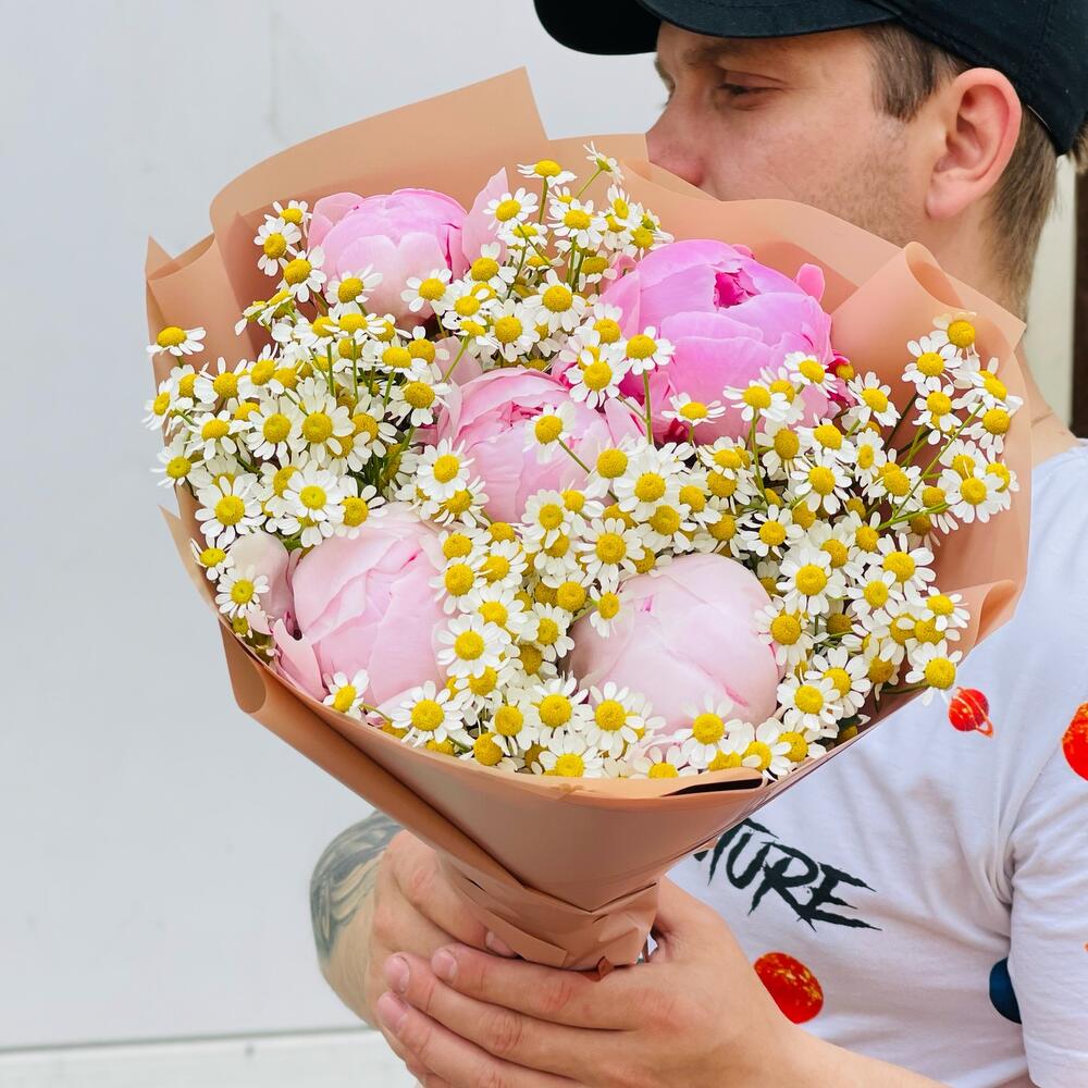 Ароматный букет пионов и ромашек