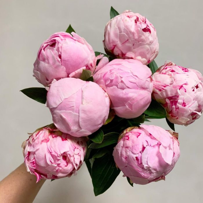 Лента – 2 шт.Пион Сара Бернар – 7 шт.Средство для продления жизни цветов – 2 шт.инструкция по уходу за цветами – 1 шт.