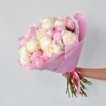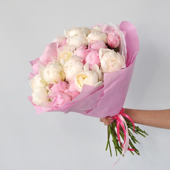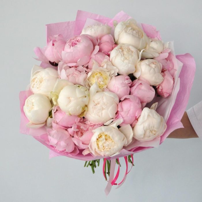 Пион – 25 шт.Лента атласная – 1 шт.Упаковка дизайнерская – 2 шт.