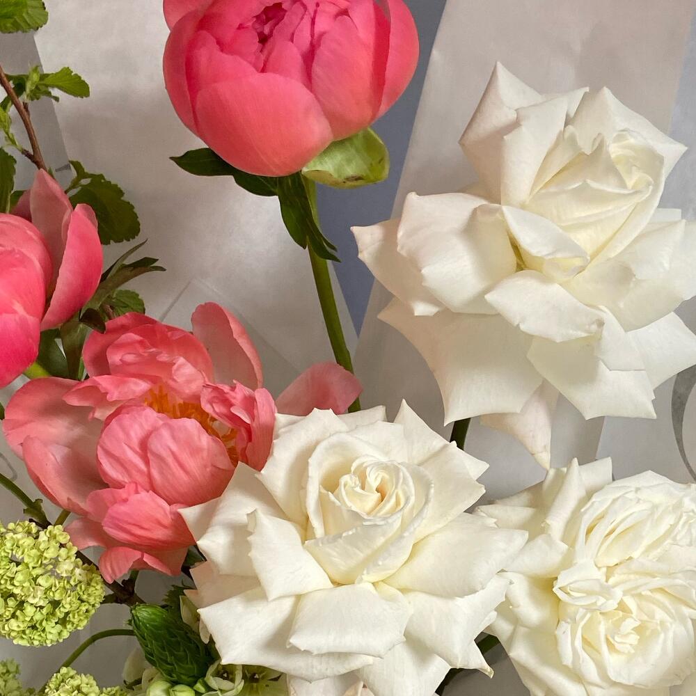 Пион – 3 шт.Вибурнум – 1 шт.плайя бланка – 4 шт.Орнитогалум – 3 шт.ветки декоративные – 2 шт.Упаковка дизайнерская – 1 шт.