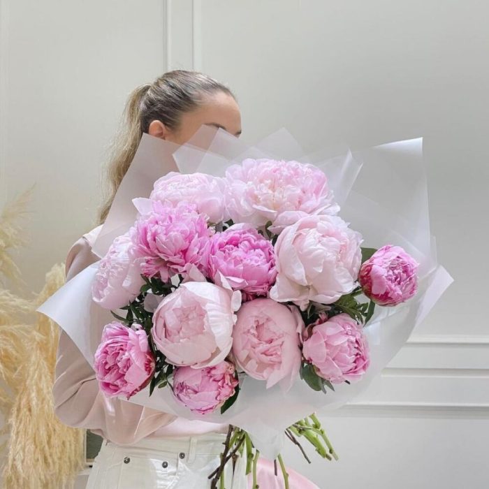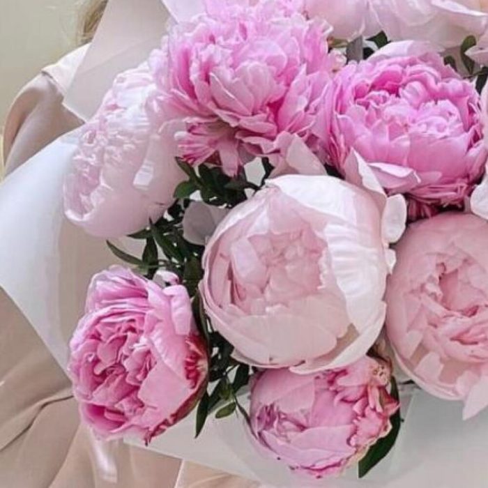 Пион розовый – 15 шт.Упаковка дизайнерская – 1 шт.Лента атласная – 2 шт.Открыточка с вашими пожеланиями – 1 шт.хорошее настроение – 100 шт.инструкция по уходу за цветами – 1 шт.коробка переноска – 1 шт.Кризал – 1 шт.