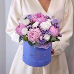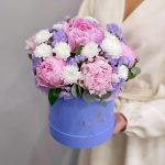 Нежная шляпная коробка с розовыми ароматными пионами и лавандовой статицей.Такой букет непременно произведет впечатление на любую девушку.Композиции в шляпных коробках не требуют перестановки в вазу, все цветы находятся в специальной флористической губке. Необходимо … Показать ещёежедневно аккуратно подливать в центр композиции воду