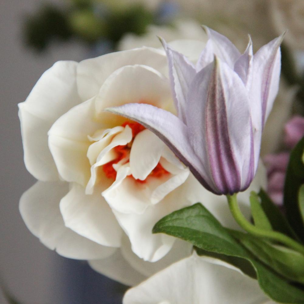 Анемон – 3 шт.Нарцисс – 3 шт.Пион – 3 шт.Сирень – 4 шт.Скабиоза – 3 шт.Эвкалипт – 5 шт.Лента атласная – 1 шт.Фисташка – 3 шт.Ранункулюс – 3 шт.Клематис – 2 шт.Львиный зев – 2 шт.Хелеборус – 2 шт.