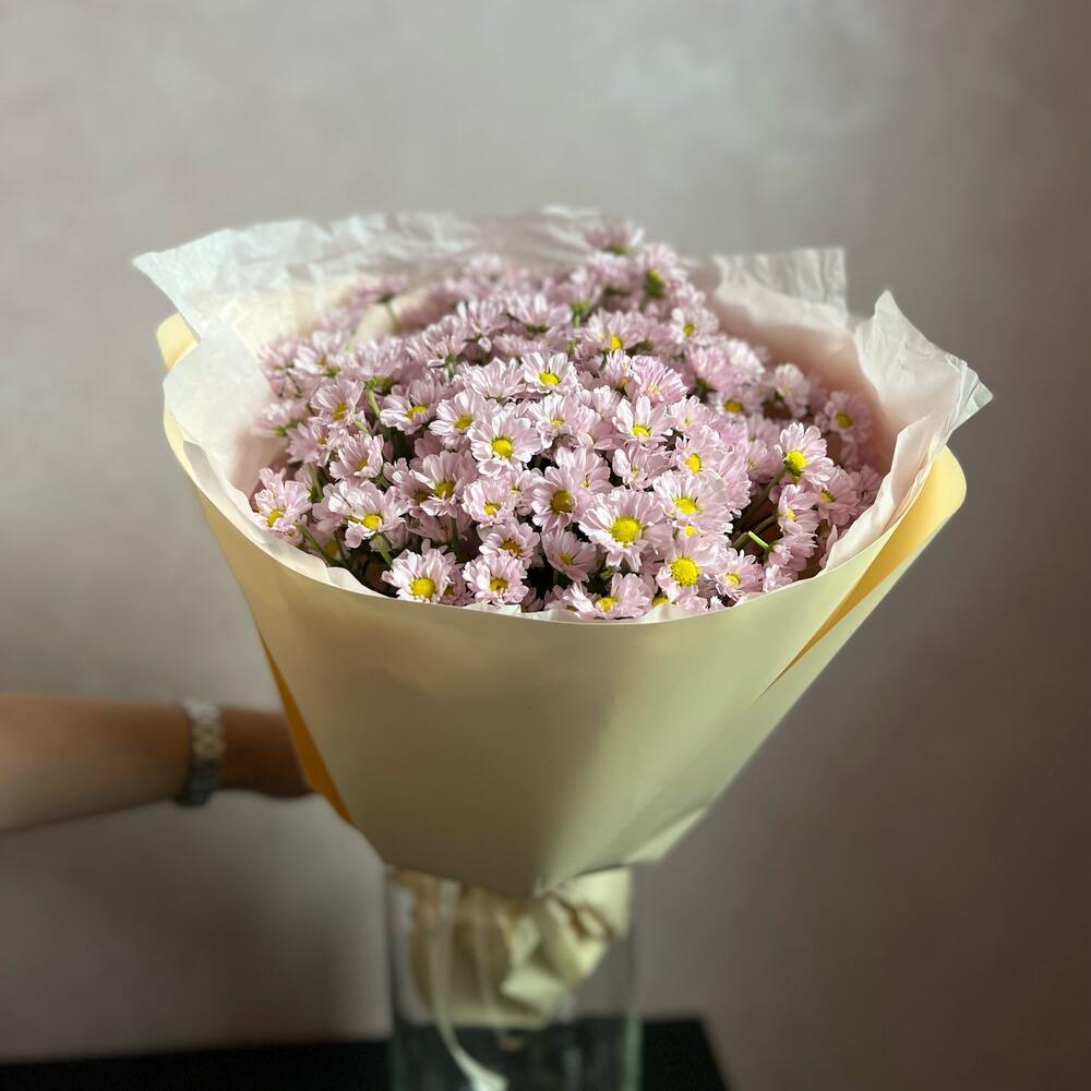 ромашка сантини – 15 шт.декоративная упаковка – 1 шт.Атласная лента – 1 шт.