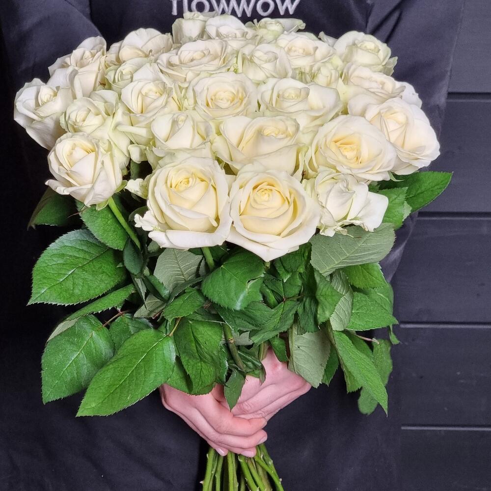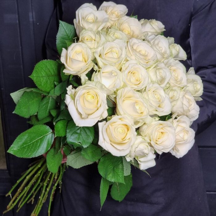 Роза Аваланж – 25 шт.Лента атласная – 1 шт.