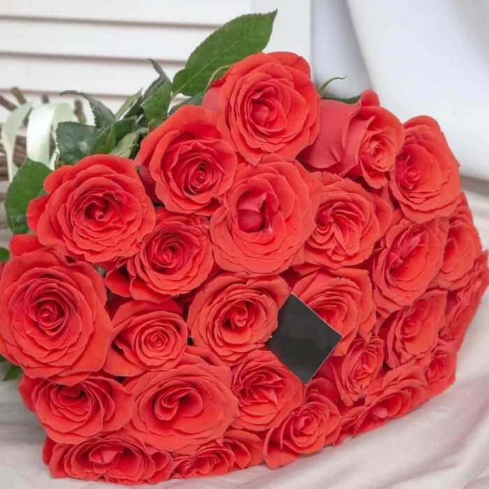роза nina эквадор 60 см – 25 шт.Пленка прозрачная – 1 шт.Лента атласная – 1 шт.
