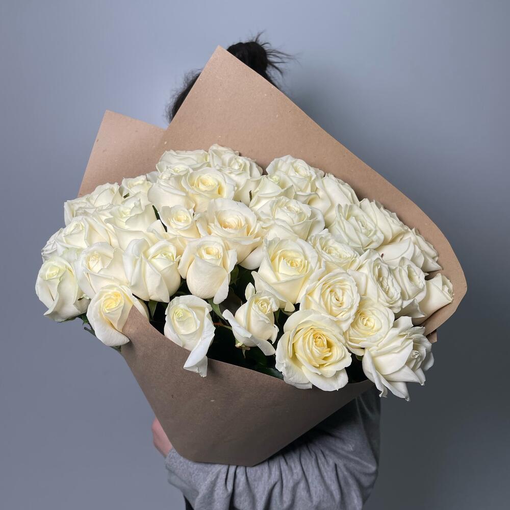 Крафт – 2 шт.Роза белая 50 см – 41 шт.витамины для цветов – 1 шт.