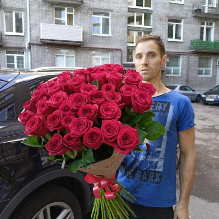 букет из роз эквадор 51 штука – 51 шт.стильный крафт – 3 шт.Лента атласная – 1 шт.
