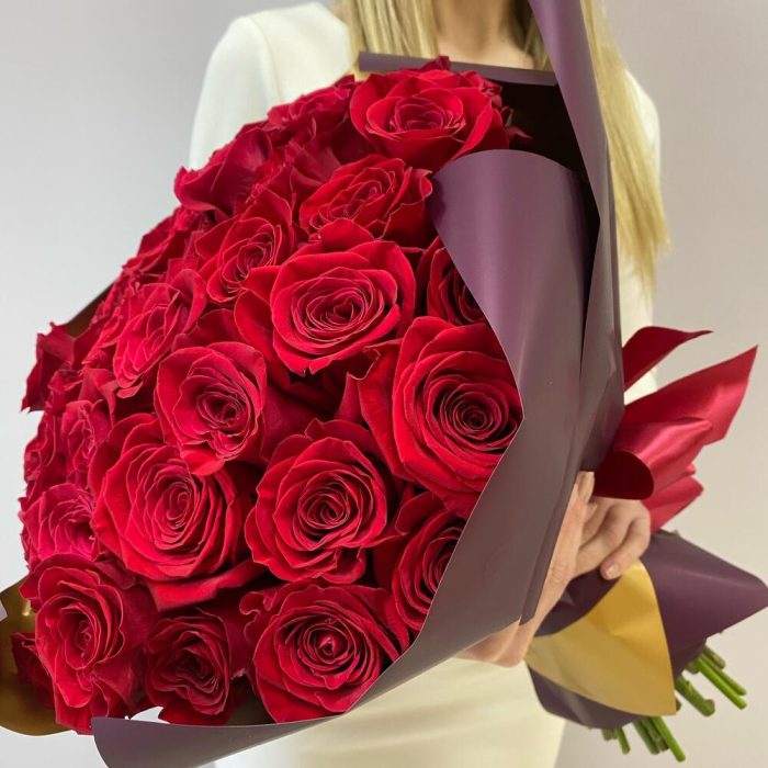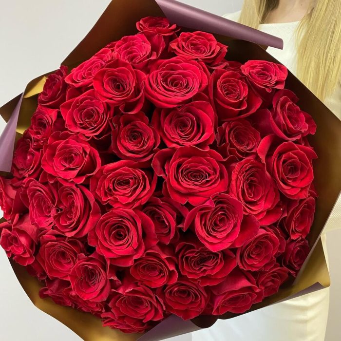 Роза Эквадор 60 см – 51 шт.Упаковка дизайнерская – 3 шт.Лента – 1 шт.