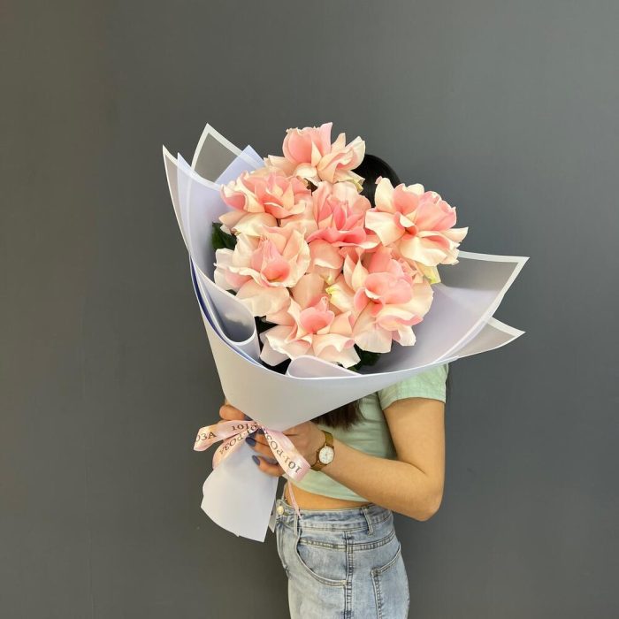 7 нежно-розовых французских роз