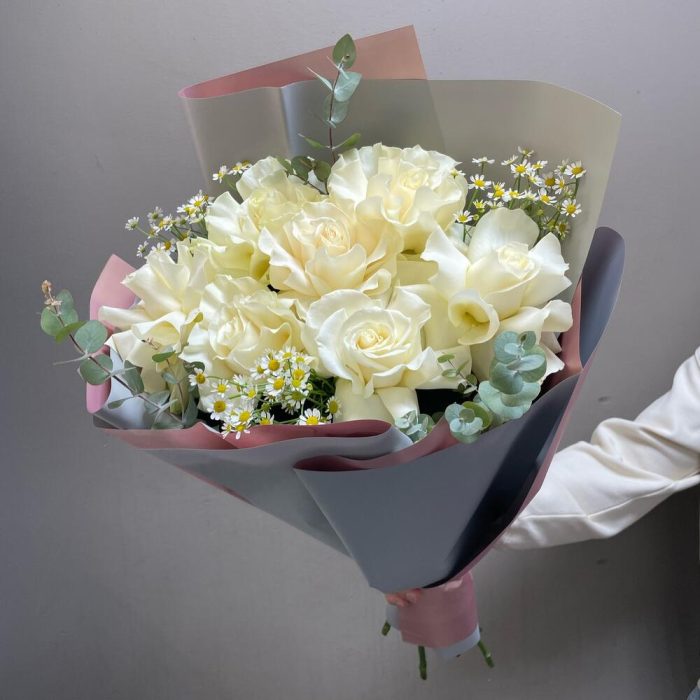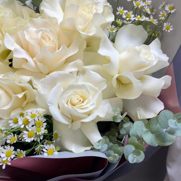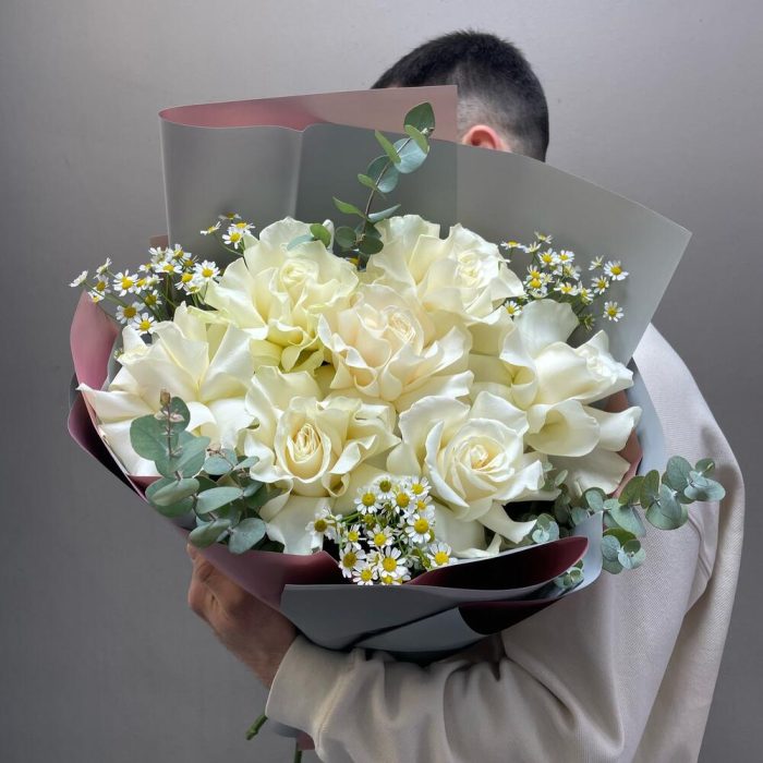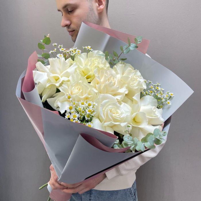 Авторский букет с белой французской розой