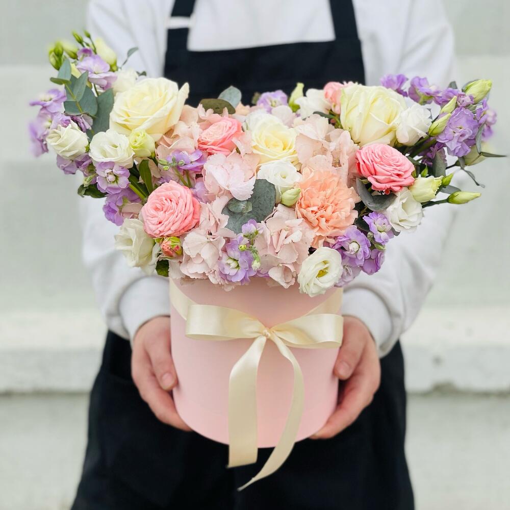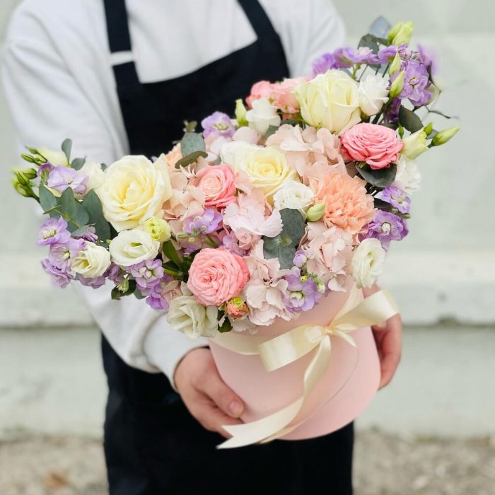 “В твоих глазах”: нежная шляпная коробка с французскими розами