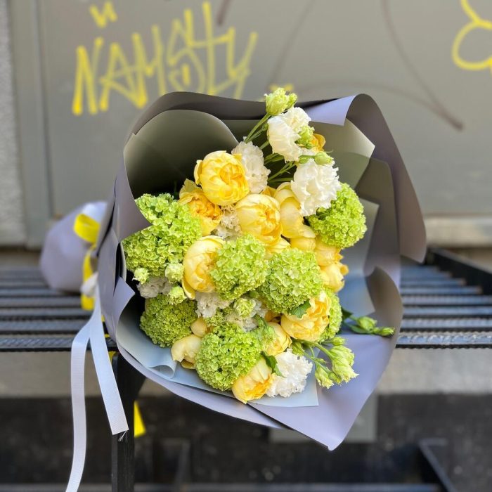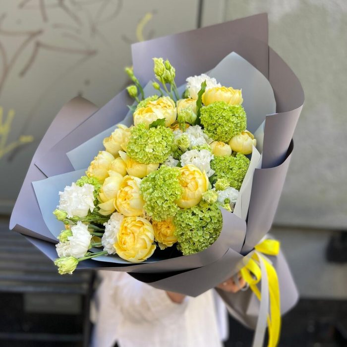 “Эвкалиптическая роскошь” гортензия и пионовидная кустовая роза