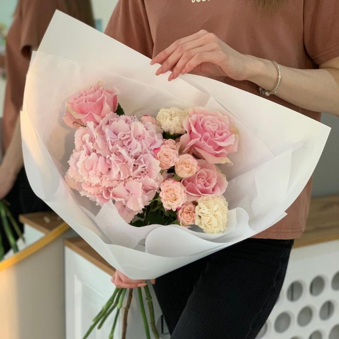 Гвоздики, Кустовые розы, Лизиантусы, Пионовидные розы, Розы