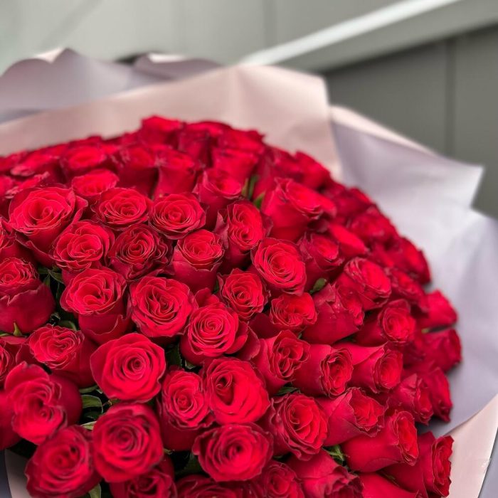 Красная роза – 101 шт. декоративная упаковка – 1 шт.
