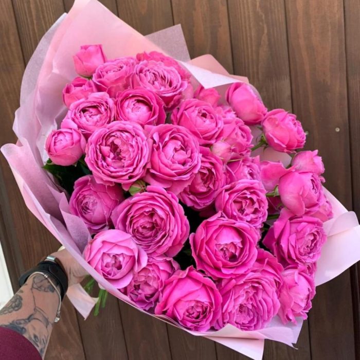 Букет из 11 кустовых пионовидных розовых роз