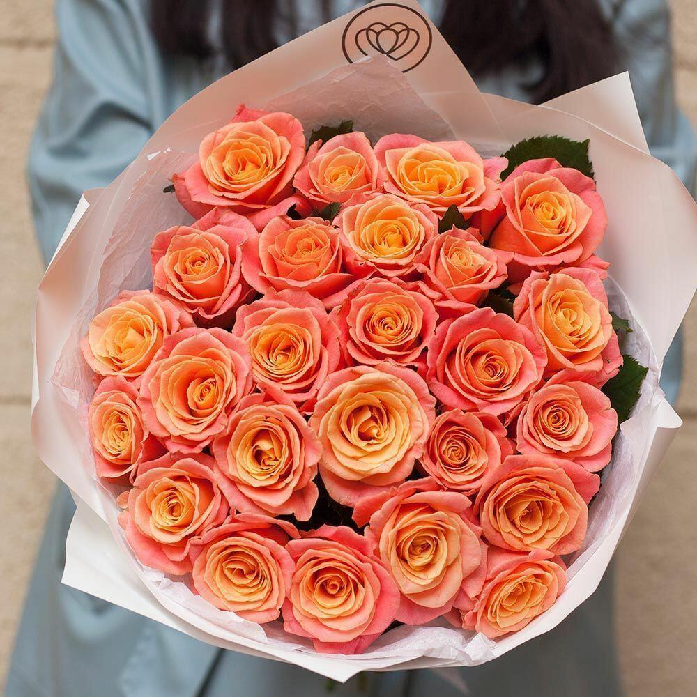 Букет из 25 коралловых роз 60 см (Россия)