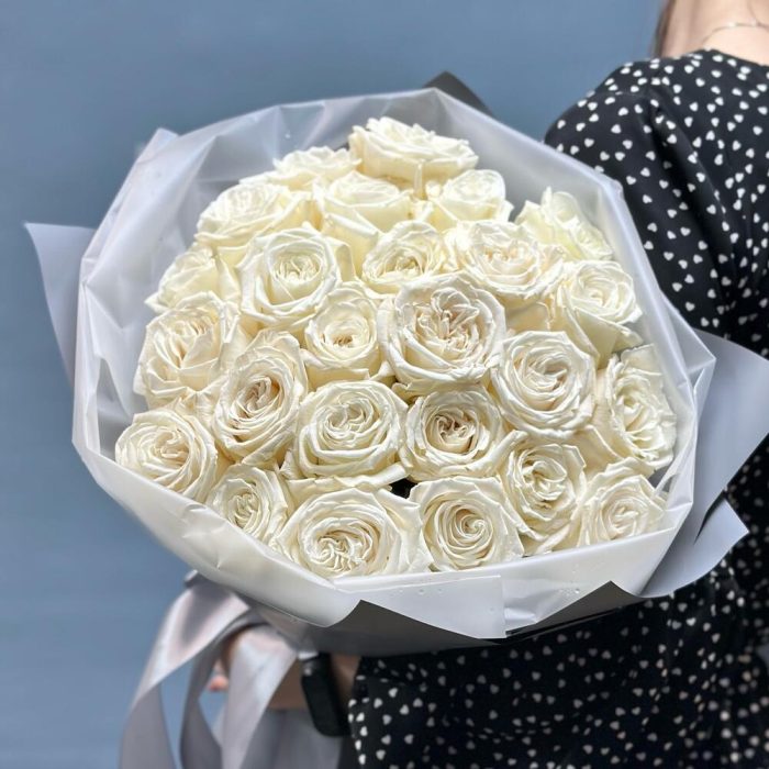 Букет из 25 пионовидных белых роз