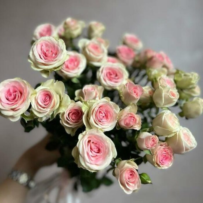 Кустовая роза – 5 шт.Атласная лента – 1 шт.
