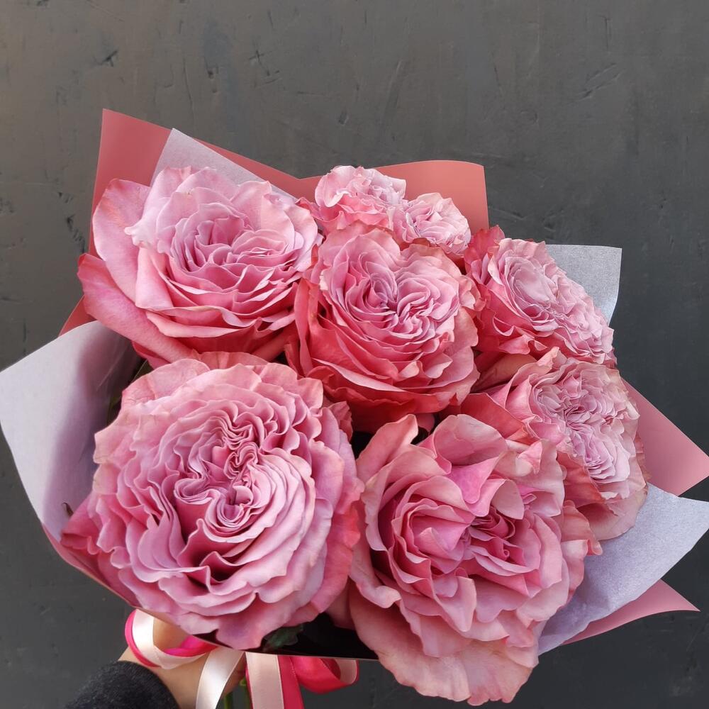 роза кантри блю – 7 шт.Упаковка дизайнерская – 2 шт.Лента атласная – 1 шт.