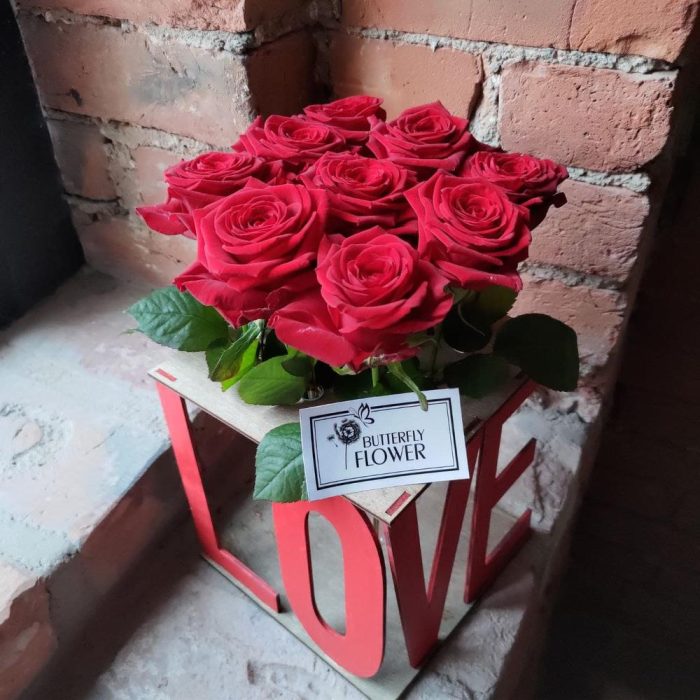 Роза – 9 шт.коробка с колбами – 1 шт.