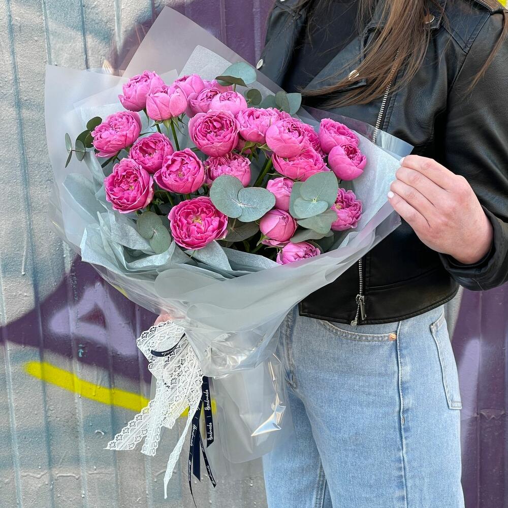 Букет из кустовой пион розы с эвкалиптом (СБ 001)