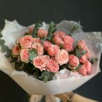 Букет из пионовидной розы и эвкалипт