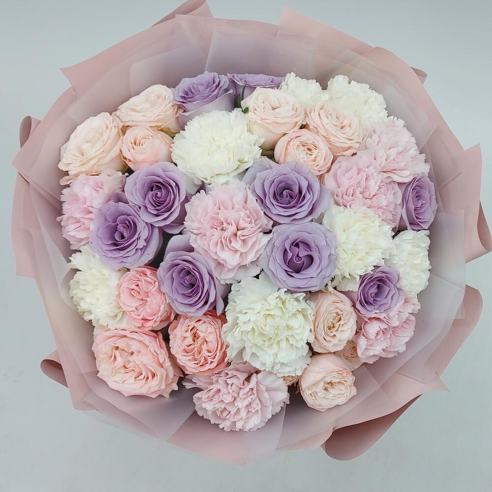 Букет из роз и диантусов “Пастель”