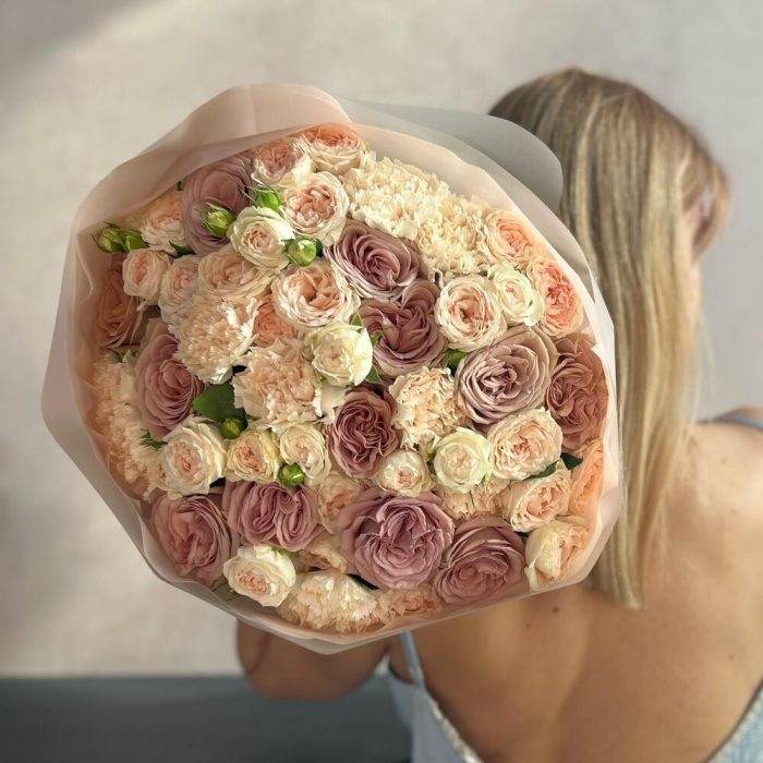 Охапка кустовых пионовидных роз