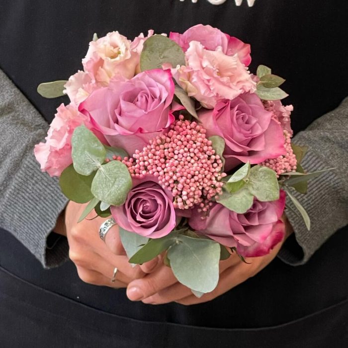 Лента – 2 шт.Лизиантус – 2 шт.Озотамнус – 2 шт.Роза одноголовая – 5 шт.
